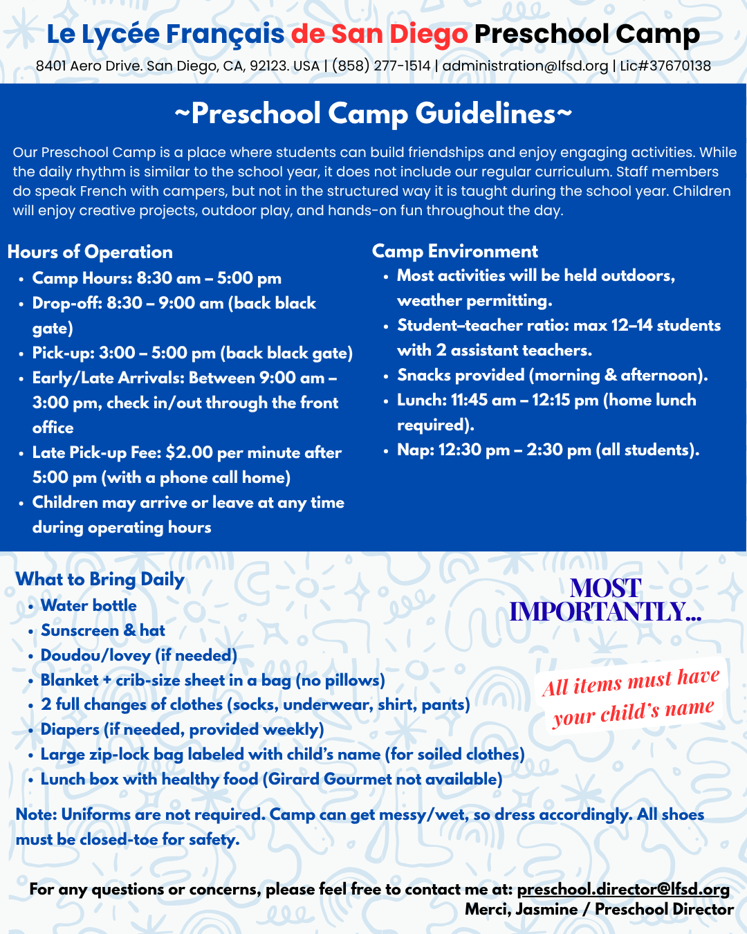 Questions? Contact: Jasmine at preschool.director@lfsd.org