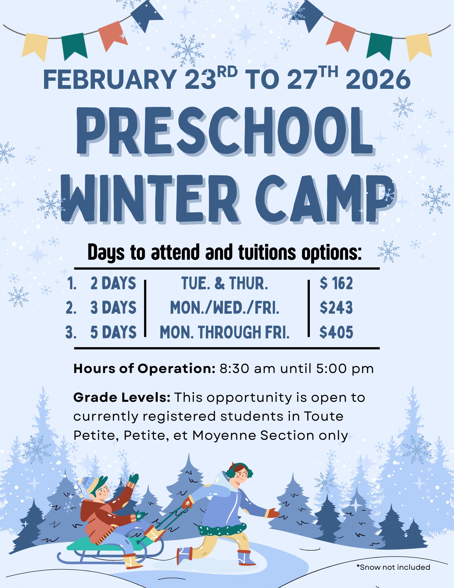 Preschool WINTER Camp (February 23-27, 2026)