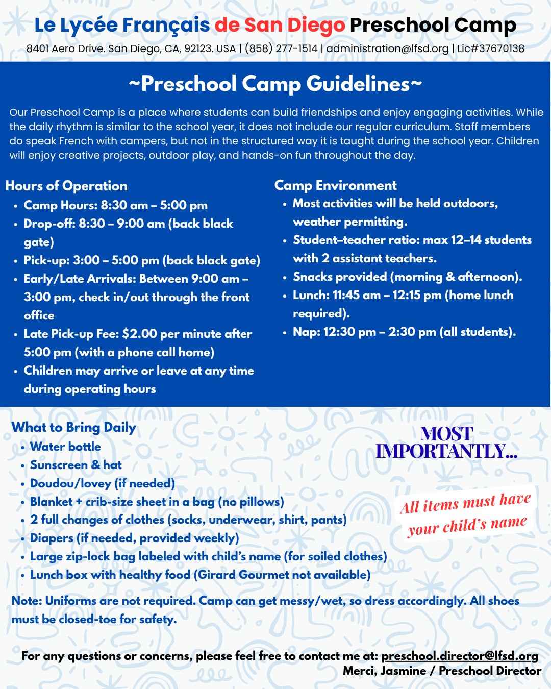 Questions? Contact: Jasmine at preschool.director@lfsd.org